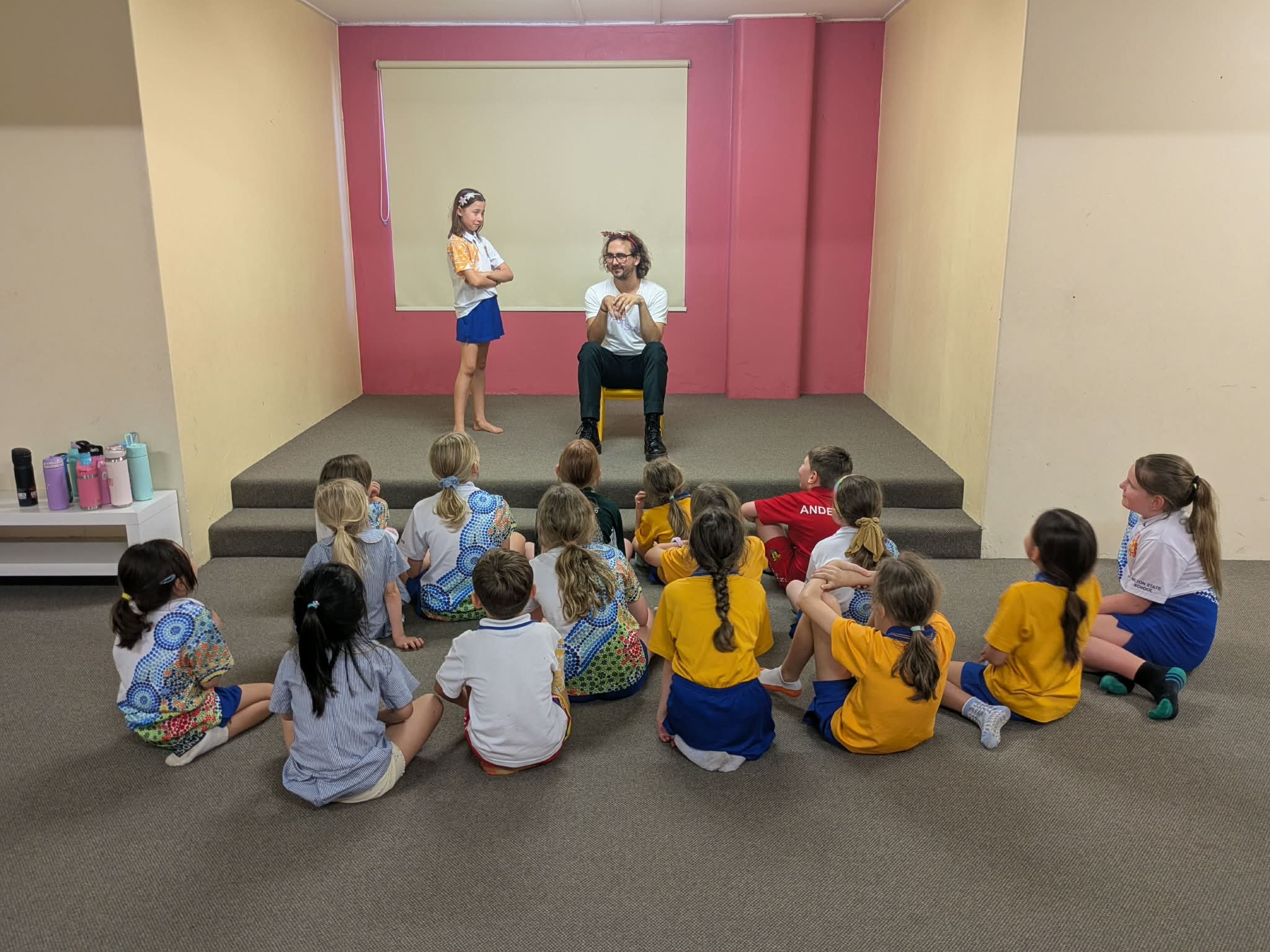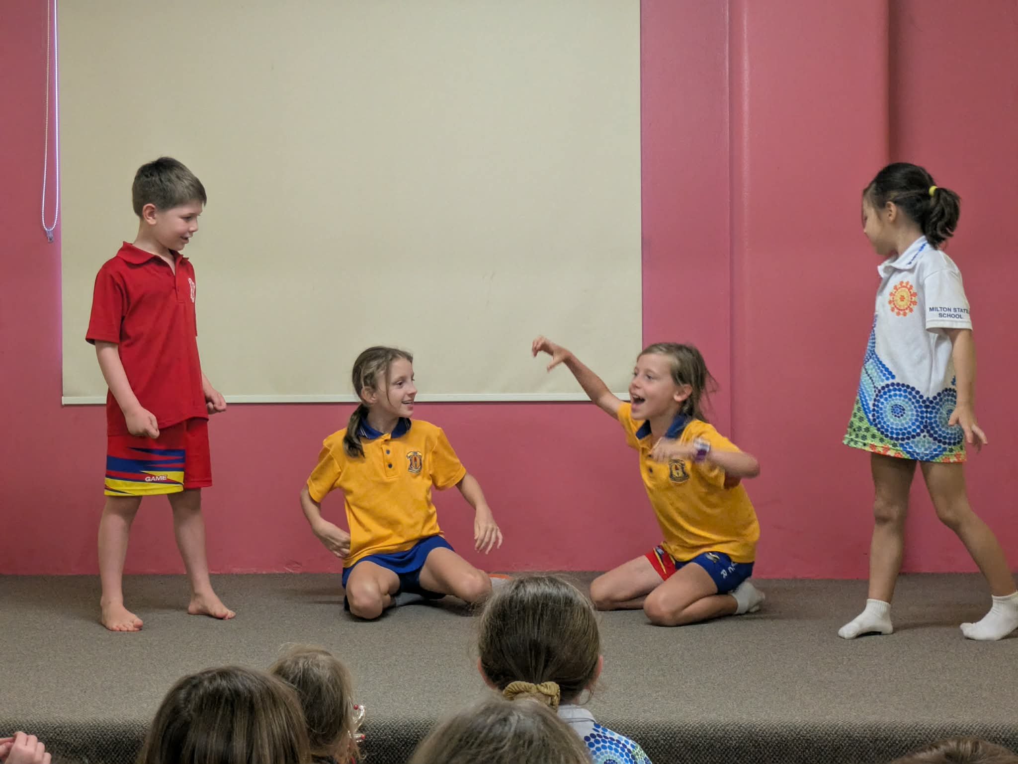 Brisbane children watching a drama performance.